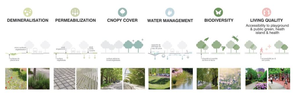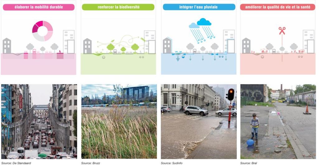 In the face of climate change, urgent measures are needed to combat heat, drought, and rainwater peaks in the city of Brussels. Trees and plants provide natural cooling, increased biodiversity, and improved quality of life, while de-paving enhances rainwater infiltration. Brussels set up a strategy for lots of small interventions